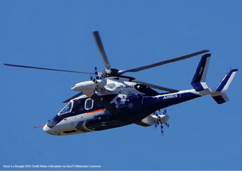 Summary : Since the first helicopters went into production in the 1940s, performance has continued to improve, but manufacturers have always had to contend with the problem of operational cruising speed. This is generally around 140 kts (259 km/h), due to the aerodynamic behavior of the rotor. The only way to overcome this problem is to use the combined formula, which relieves the rotor of lift by adding a wing or a second rotor, and of propulsion by adding propeller(s) or engine(s). After being studied and then abandoned in the 60s and 70s, the question was revived in the mid-2000s, culminating in the H3 concept developed by Airbus into a demonstrator.the X3 technology demonstrator (1st flight in 2010) and the RACER mission demonstrator (1st flight in 2024), the latter being part of the European Clean Sky 2 research program. Between its excellent stability and its propeller management assistance functions, a helicopter pilot is immediately at ease at the controls of the H3 concept, as the pilots invited on board have been able to confirm. Designed with the ambitious aim of reducing fuel consumption despite its significantly increased speed, the RACER reached a speed of 240 kts (444 km/h), against a target of 220 kts.