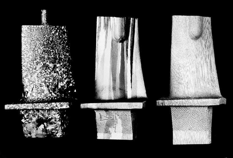 Les aubes de turbine, pièces les plus chaudes des turboréacteurs, sont aujourd’hui fabriquées en superalliage base nickel coulé et solidifié en structure sans joints de grains, c’est-à-dire monocristalline.