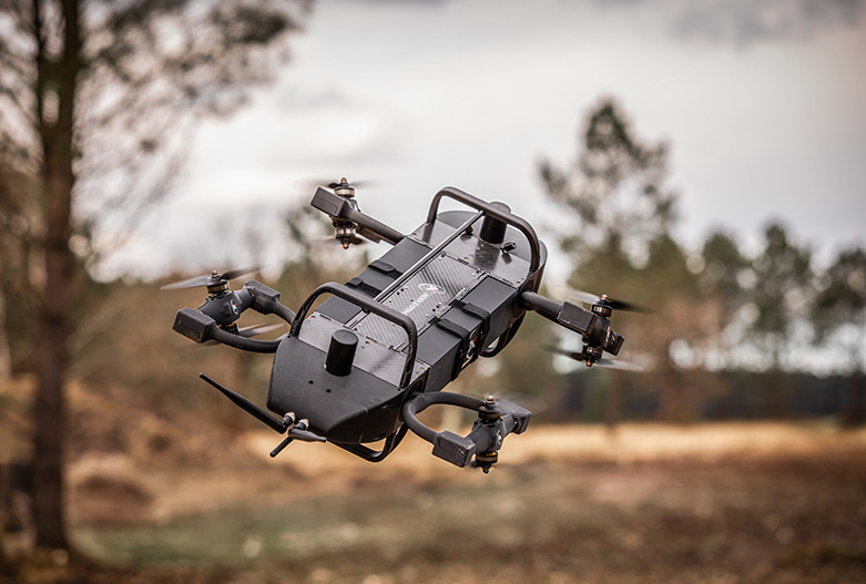 Cette modularité transforme la plateforme en véritable vecteur multirôles. Surveillance longue durée, désignation laser, interception dynamique, appui terminal ou mission de brouillage électro- nique : chaque module peut être engagé selon les objectifs tactiques sans refonte du système porteur.