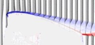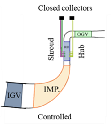Par exemple, les ondes de choc se formant au niveau des aubages fixes du redresseur (OGV) dans les conditions d’écoulement bloqué (cf. figure de droite) sont généralement exclues de l’intégration par la méthode standard de calcul de l’anergie des ondes de choc, car elles se situent dans le sillage des aubes de la soufflante. En revanche, la méthode proposée les prend en compte.