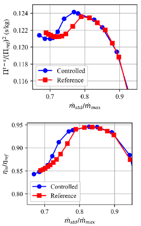 Session 1A - Voilures tournantes – Parmi les présentations de cette première session, une étude de Safran / École Centrale de Lyon a montré que l’ajout de trous de contrôle passif situés à la fois sur le moyeu et le carter d’un diffuseur radial, reliant ainsi les canaux entre les aubes entre eux, permet de retarder le décrochage et d’améliorer la stabilité d’un compresseur TURBOCEL de Safran Helicopters.