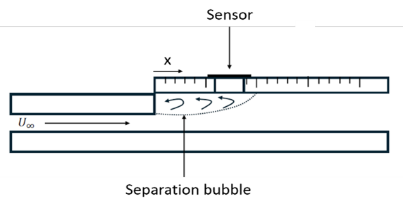 Frottement instantané en aval d’une marche descendante - Crédit : TU-Berlin