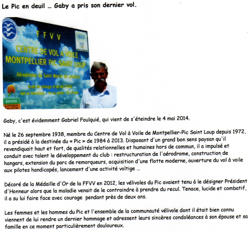 Président d'honneur du Centre de Vol à Voile de Montpellier Pic St Loup, titulaire de "Insigne d'Or avec Diamants du Vol à Voile" décerné par la Fédération Aéronautique Internationale, et de la "Médaille d'Or de la Fédération Française de Vol à Voile".